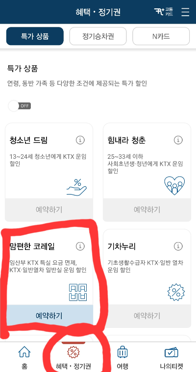 º코레일톡 : 혜택.정기권 → '맘편한 코레일'